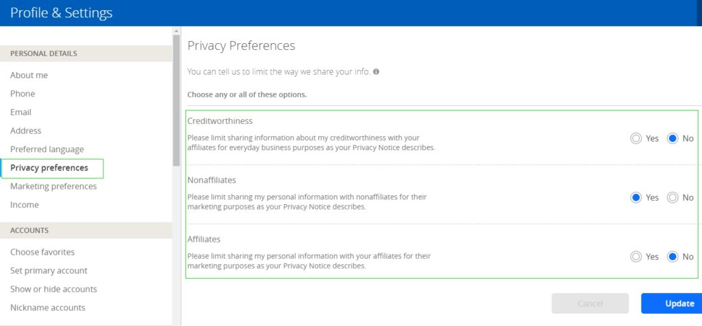 I have been having some difficulty with special offers on one of my Chase Accounts and always wondered how Chase is not able to fix this. I found something recently and I hope this is the fix for that. There is a marketing and privacy preference update available on Chase online. It’s also important to review your privacy preference updates to see what companies your data is being sold to. This has been a hot topic recently, information is valuable and it’s important to keep it under control.